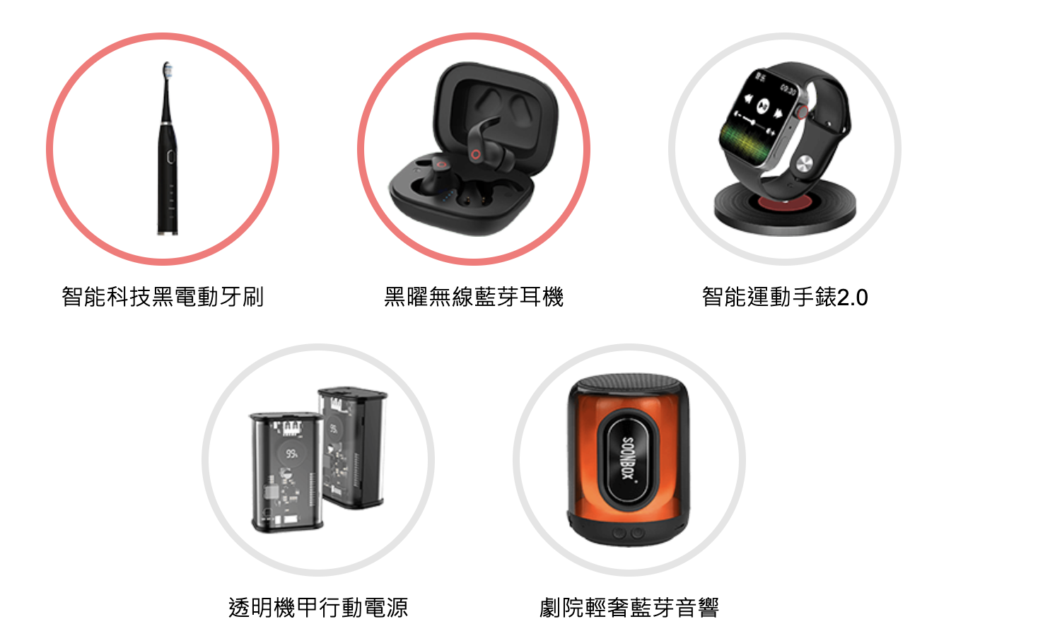 智能科技黑電動牙刷、黑曜無線藍芽耳機、智能運動手錶2.0、透明機甲行動電源、劇院輕奢藍芽音響!